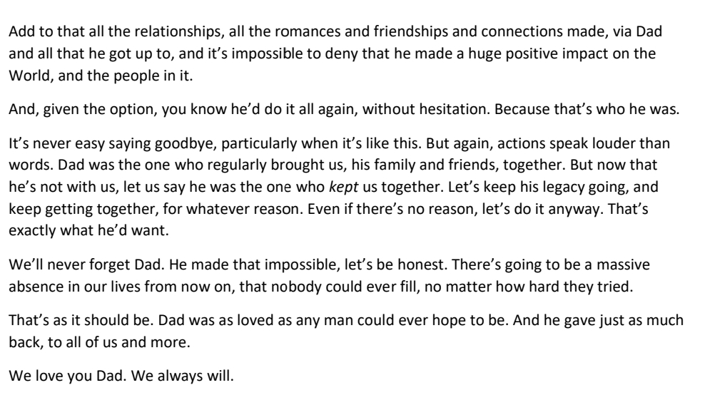 Dean Burnett Garwboy Ohai Social On Twitter Just Wanted To Share The Eulogy I Wrote And Read At My Father S Funeral Today That S My 58yo Father With No Health Problems Who Died Of Covid19